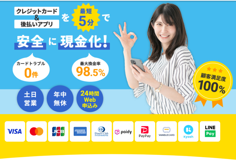 高換金率!クレジットカードと後払いアプリ対応